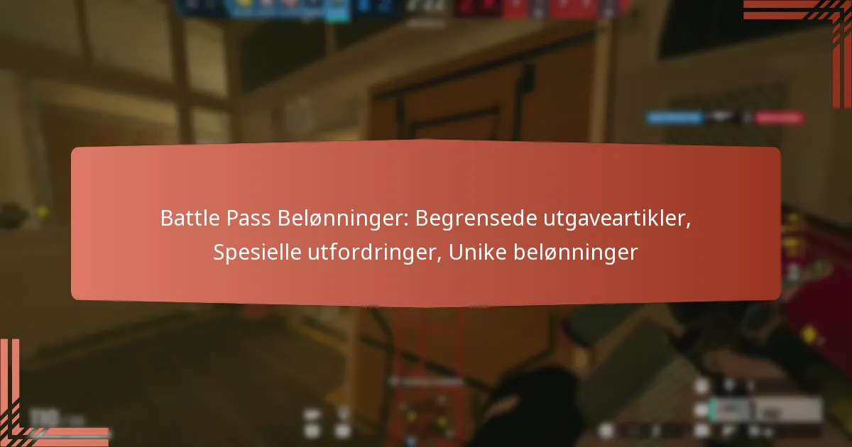 Battle Pass-belønninger i Tom Clancy’s Rainbow Six Siege gir spillerne eksklusive gjenstander og utfordringer som forbedrer spillopplevelsen deres. Ved å gjøre fremskritt gjennom den sesongbaserte Battle Pass-en, kan spillerne låse opp begrensede utgaver av kosmetikk, spesielle utfordringer og unike belønninger som oppmuntrer til kontinuerlig engasjement med spillet. Disse belønningene tilbyr ikke bare tilpasningsmuligheter, men gir også spillerne unike oppgaver som gir ekstra insentiver for deltakelse.