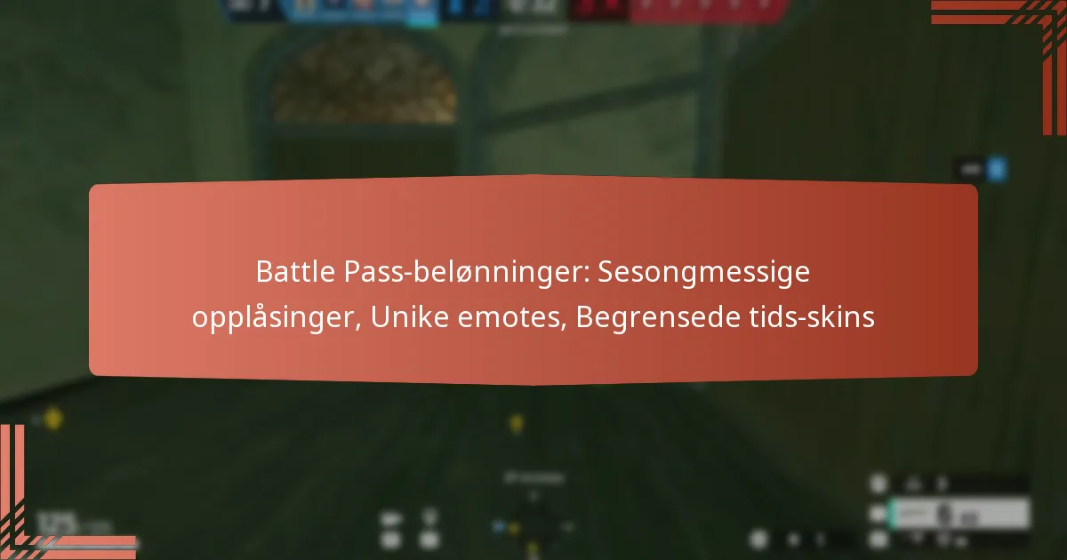 Sesongmessige låser i Tom Clancy’s Rainbow Six Siege Battle Pass refererer til eksklusive belønninger som spillere kan tjene ved å gjøre fremskritt gjennom Battle Pass i løpet av en spesifikk sesong. Disse låsene inkluderer ofte unike skins, emotes og andre kosmetiske gjenstander som forbedrer spillopplevelsen og viser spillerprestasjoner.