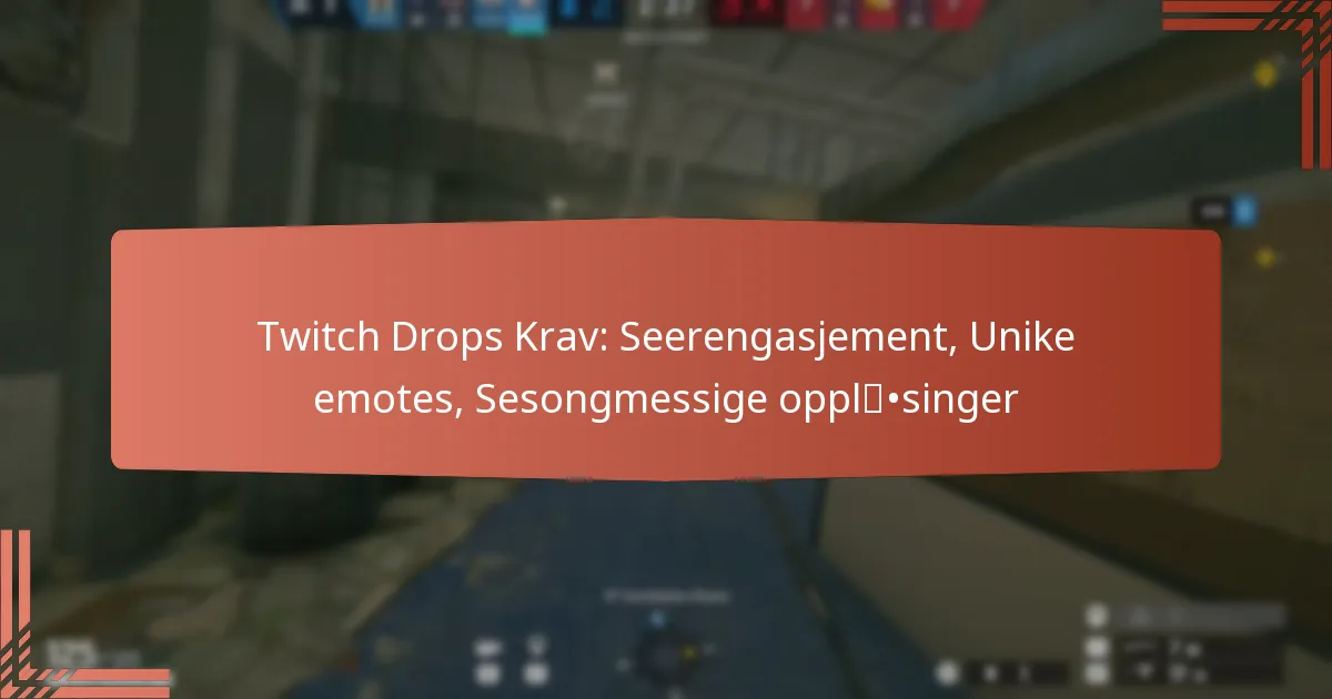 Twitch Drops er spennende belønninger som seere kan tjene ved å engasjere seg med spesifikke strømmer på plattformen. Disse belønningene, som inkluderer unike emotes, eksklusive gjenstander i spillet og sesongmessige opplåsinger, forbedrer seeropplevelsen betydelig og oppmuntrer til aktiv deltakelse. For å kreve disse belønningene må seerne følge visse trinn for å verifisere berettigelse og fullføre nødvendige handlinger mens de ser på kvalifiserte strømmer.